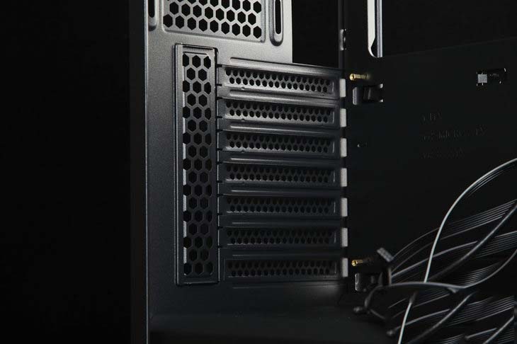 扩展槽部分共设置有7个扩展挡板,遗憾的是,这类挡板处于不可拆卸i式设计,也就意味着取下后将无法重复安装防尘。