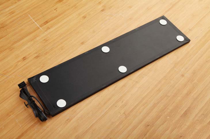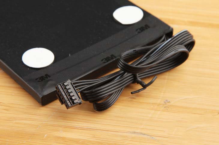 背部贴有六个圆形双面胶,便于固定在侧透板一侧的电源仓表面。