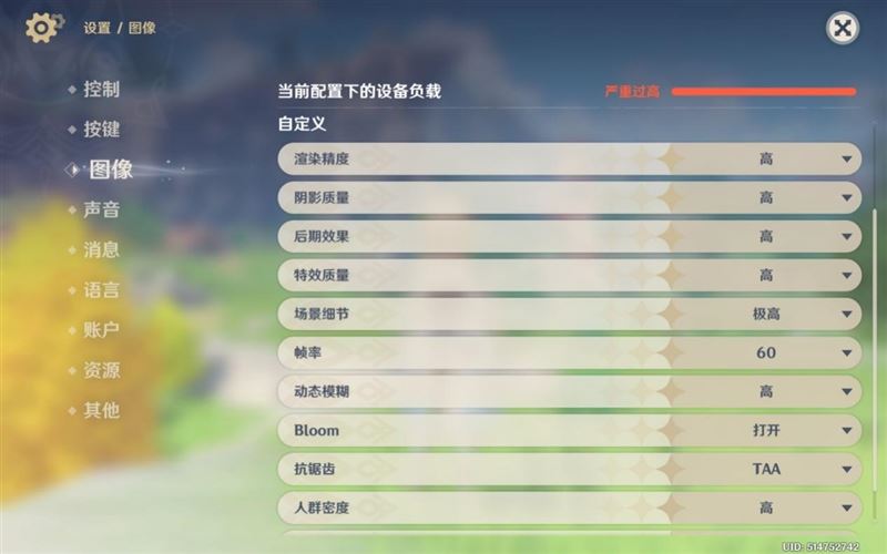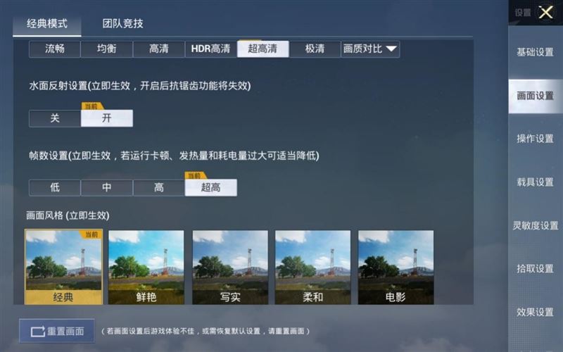 图像质量选择“极高”,同时将帧率上限调为60fps。