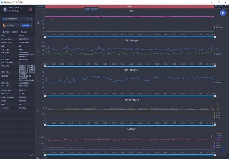 《和平精英》我们玩了10分钟,帧率稳定在40fps,波动极小。这款游戏对于骁龙8+处理来说,并不构成多少压力。