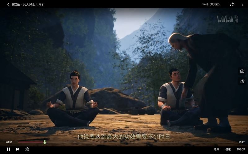 在b站观看《凡人修仙传》动漫,1080p分辨率,亮度为50%。