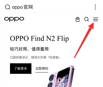 1、打开oppo网站点击右上角的三条杠菜单图标。