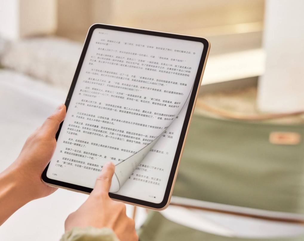 回到正面。oppo pad 2 的屏幕并非 100% 纯平,而是和手机的 2.5d 玻璃类似,靠近中框位置屏幕边缘略有弧度,搭配圆角设计与弧形中框,视觉效果相当不错。