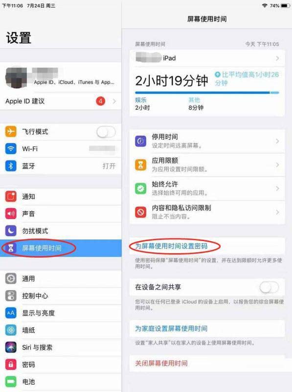 1、打开ipad的设置,点击“屏幕使用时间”-“为屏幕使用时间设置密码”,设置好密码以后,点击“内容和隐私访问限制”;