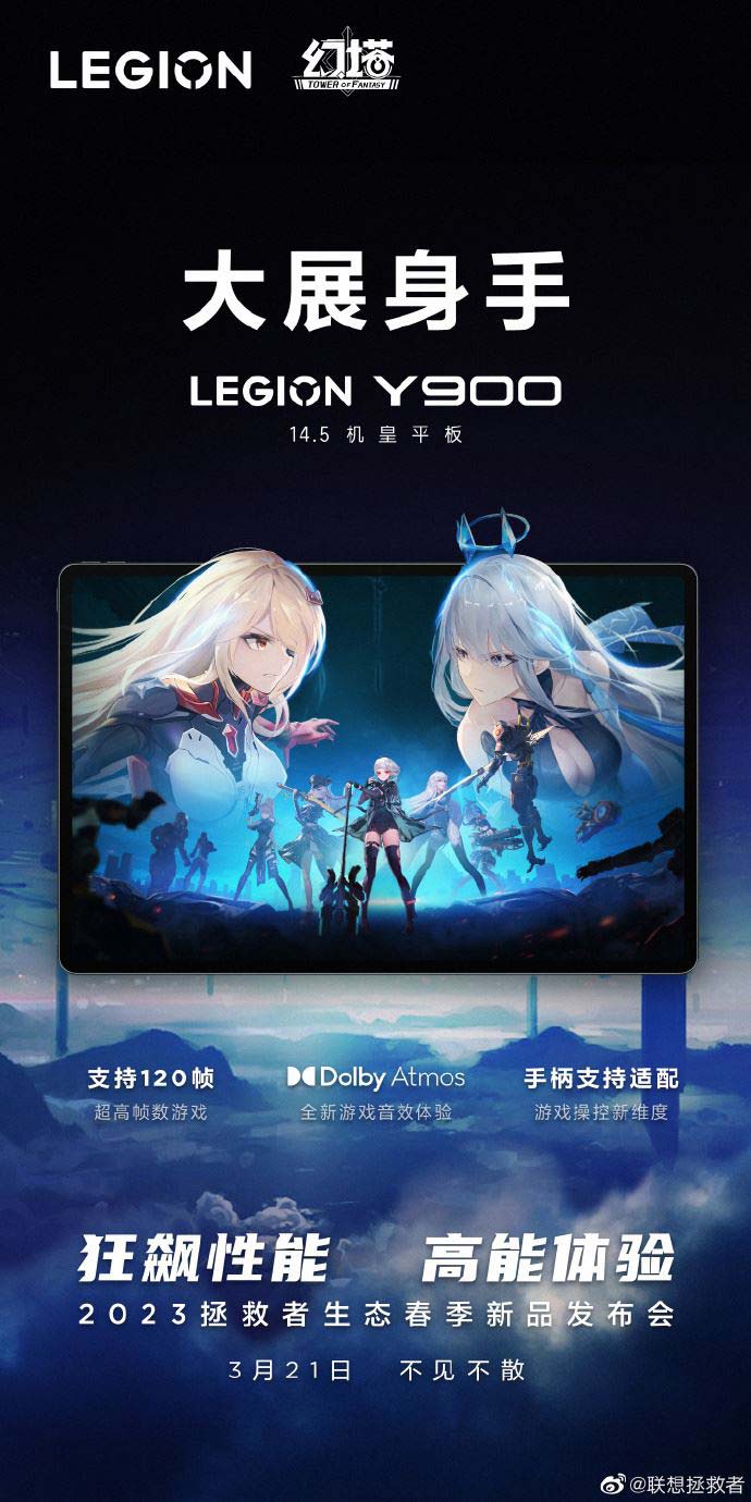 联想拯救者Y900平板预热: 3月21日发布在近日联想拯救者官方的宣传预热过程中,正式官宣旗下新一代安卓旗舰平板电脑拯救者 Y900 将会在 3 月 21 日同期发布... 23-03-20