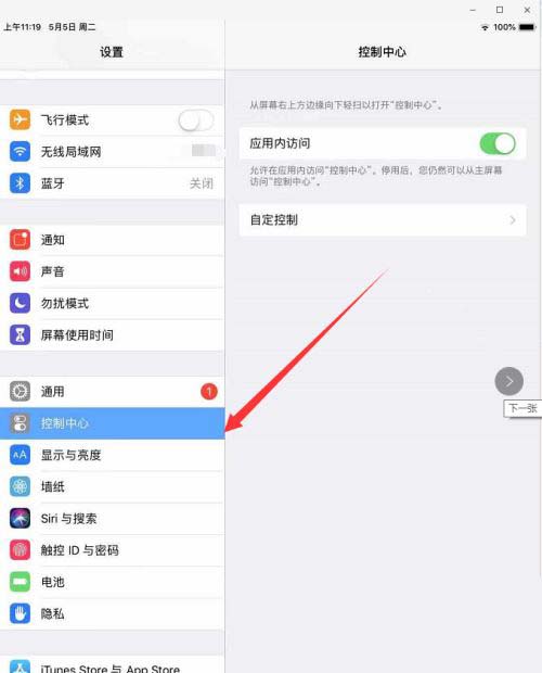 2、在设置中找到“控制中心”,进行点击。