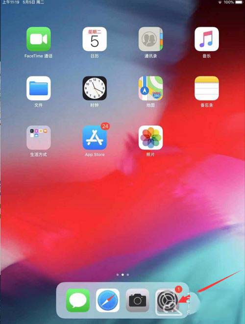 1、打开ipad mini6,在ipad mini6的程序坞找到“设置”,点击进入。