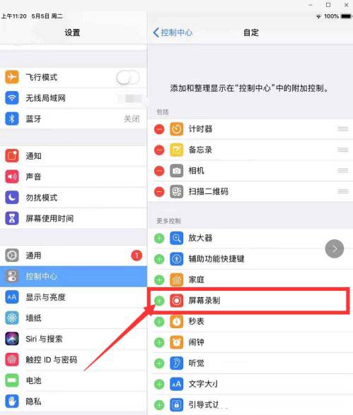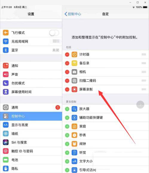 5、点击完后,即可将屏幕录制添加至控制中心。