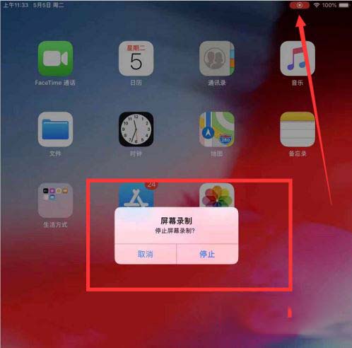 8、点击上方“屏幕录制”的小图标后,即会弹出是否停止录制的对话框。