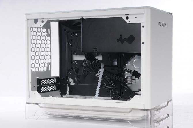 以目前主流的机箱来说,与迷你塔型机箱的配置很类似,只是少了分舱式的设计,在内部空间摆设大同小异,但他是专属itx主板使用,另外稍微比较特别的地方,在于电源供应器配置靠前面板上方处。