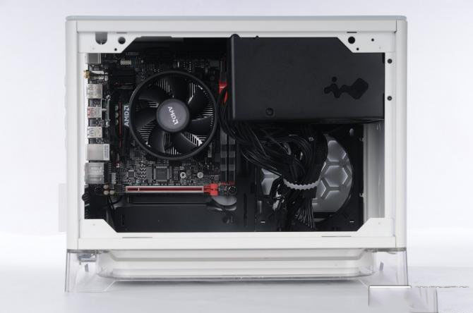 这次迎广a1机箱在安装配置时,主板为ixt尺寸,显卡则是以295mm长为主,先说主板部分,固定锁点没问题,另外在i/o端口、电源、sata等接线上无冲突,不过由于机箱内部空间比较小,所以在接线时需要下一些功夫,像是显卡安装时,稍微移个角度就能卡进,但如果在机箱后方安装风扇时,显卡将无法取下,需要先将风扇拿下来。