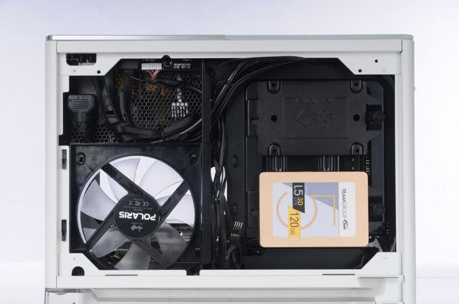 最后在储存安装部分,提供2个2.5寸空间于右侧板内,固定方式采用螺丝,安装于铁架上,此外i/o面板等相关线材,也配置于此面。
