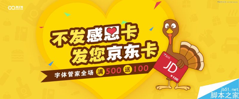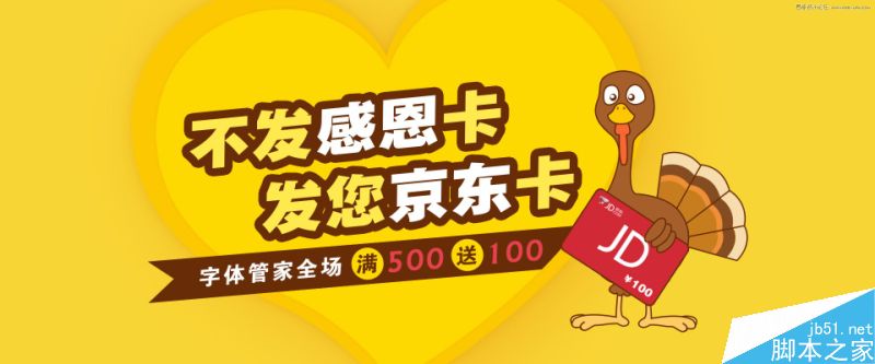主标题是感恩卡,肯定与感恩节有关系。(想到感恩节,我就只想到火鸡,这算吃货属性吗- -!)我是先上花瓣找了好多感恩节的图,看看别人感恩节是怎么做的,找找灵感和参考。好多设计都是橙色,黄色,红色等暖色调,然后就是爱心,火鸡,亲情,爱情等。也没想做的标新立异,所以还是根据大多数用户的感觉来走,选用了黄色为主色调,然后元素就选取了爱心,火鸡。