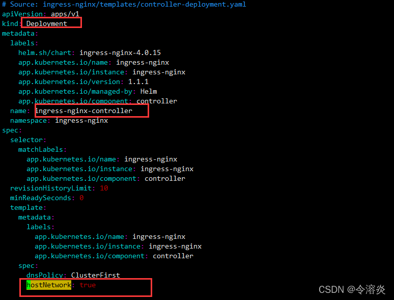 这次的报错同ingress-nginx-admission-create报错,在ingress-nginx-controller的deployment中spec.template.spec中添加如下hostnetwork: true