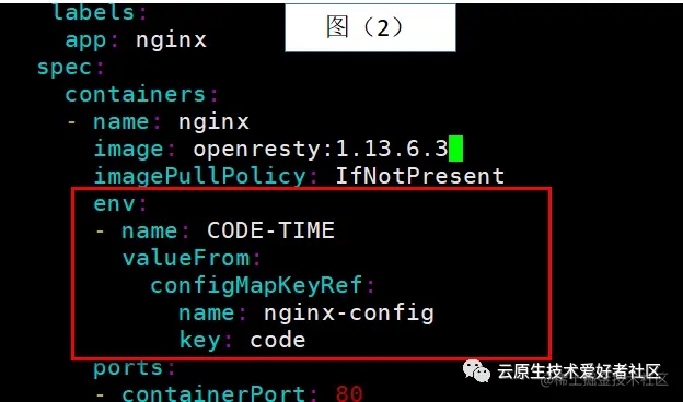 2、deployment yaml中引用 configmap 设置环境变量,如图(2)所示