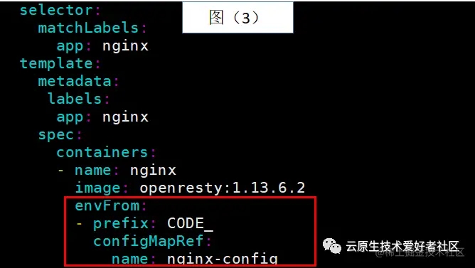 1、一次性传递所有configmap条目作为环境变量,如图(3)所示