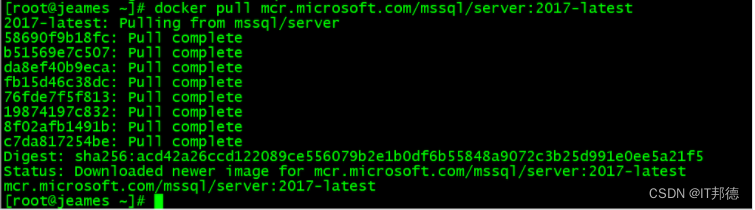 [root@jeames ~]# docker exec -it sqlserver2017 bash ##查看docker日志 [root@jeames ~]# docker logs sqlserver2017