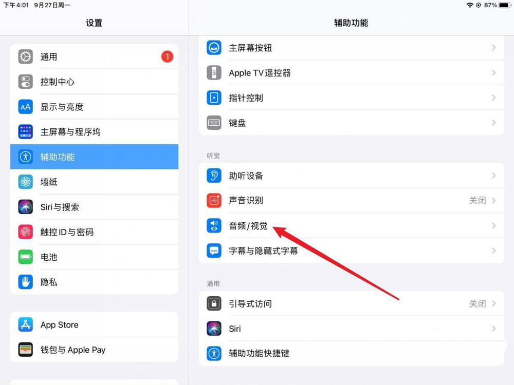 点击音频/视觉。在右侧选择音频/视觉选项。