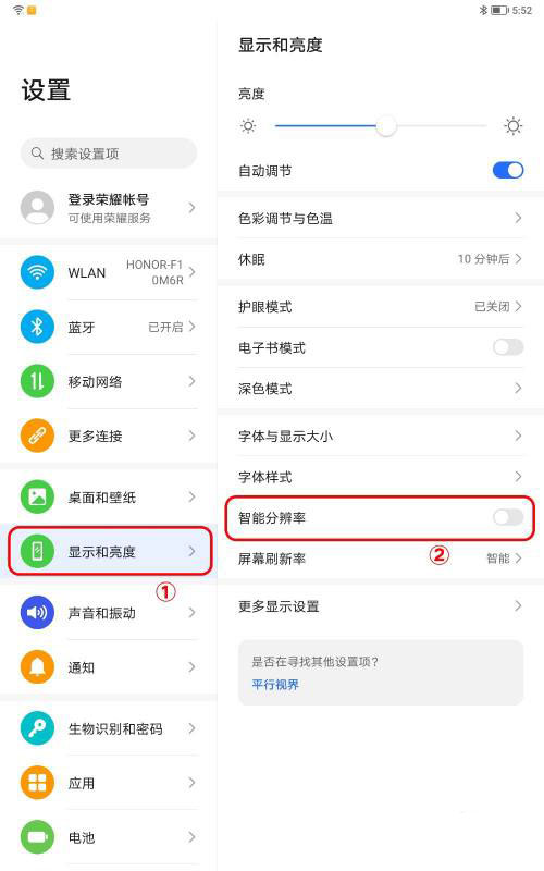 方法一:如果手机/平板仅在使用某个应用时出现显示模糊、不清晰的情况,关闭智能分辨率开关后检查是否恢复正常