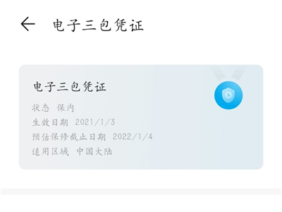 3、点击电子三包凭证后查看即可。