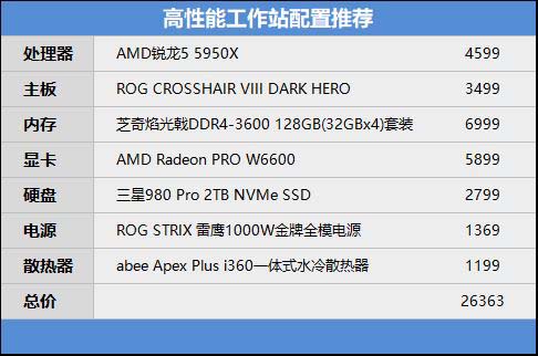 整机下来预算不到3万,就可以组装一台高性能的工作站配置,现有的平台还能够兼容下一代zen 3d,升级换代还是比较灵活的。