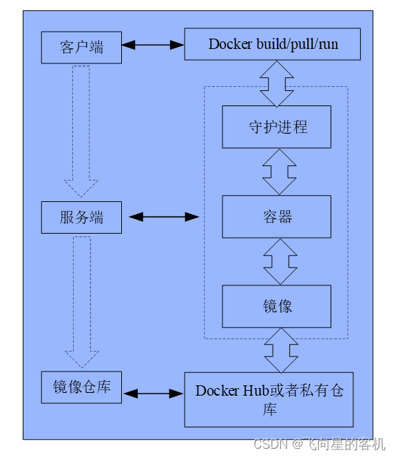 镜像为 docker 容器的运行基础,容器是镜像的具体运行实例,镜像仓库为镜像提供了可靠的存储空间,镜像可以从公有或私有仓库拉取,如图所示👇