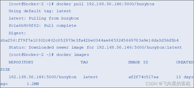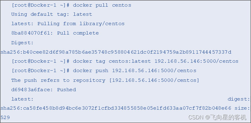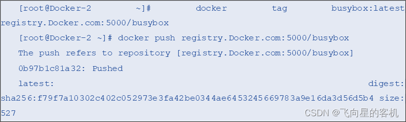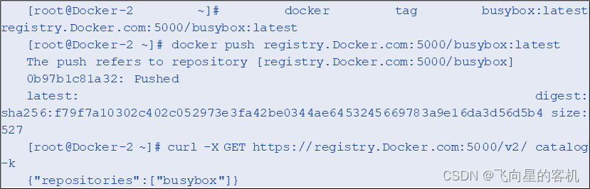 (5)docker-1 是仓库的宿主机,下面使用 docker-2 推送镜像到私有仓库,示例代码如下: