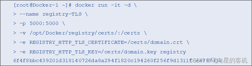 (2)运行仓库容器,并指定 tls 证书与身份验证目录,示例代码如下: