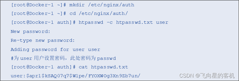 (3)使用 htpasswd 工具生成用户账户,并设置密码,示例代码如下: