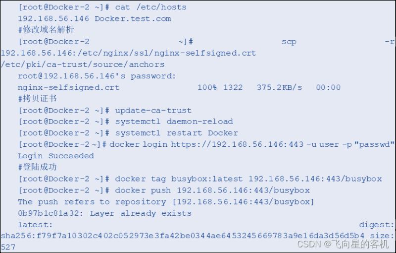 (6)在 docker-2 登录仓库,并推送镜像到仓库,示例代码如下: