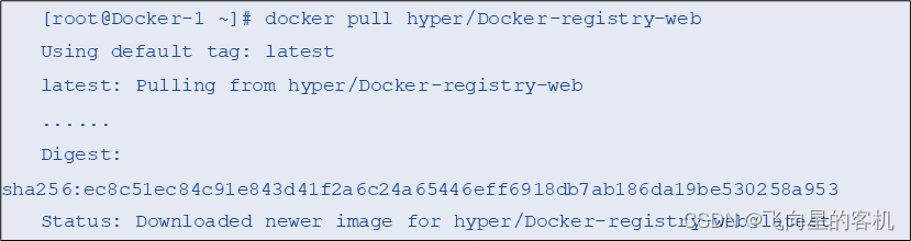 (1)同样采用拉取镜像的方式运行 hyper/docker-registry-web,示例代码如下: