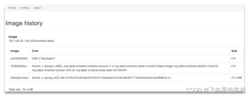 查看镜像的标签、大小、构建历史等信息,如图所示👇