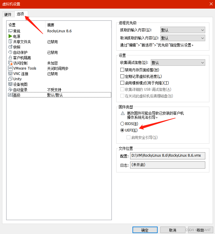 删除多余硬件,选择efi引导