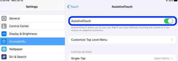 7、开启辅助触控并配对鼠标后,ipad 上就会出现类似“小白点”的圆形鼠标指针。
