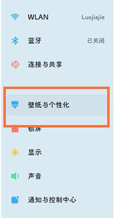 1、在手机设置菜单中点击【壁纸与个性化】,点击【壁纸库】选项。