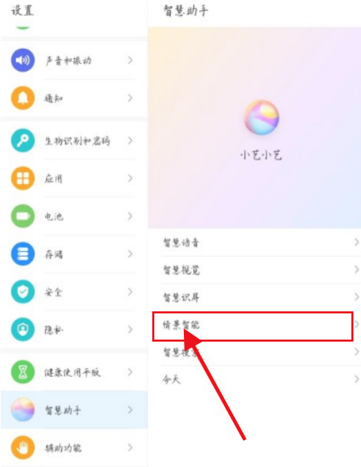 3、点击情景智能。
