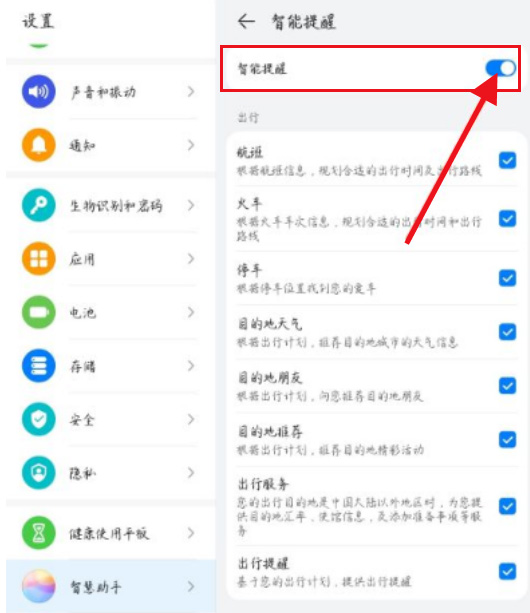 4、打开智能提醒的滑动栏即可。