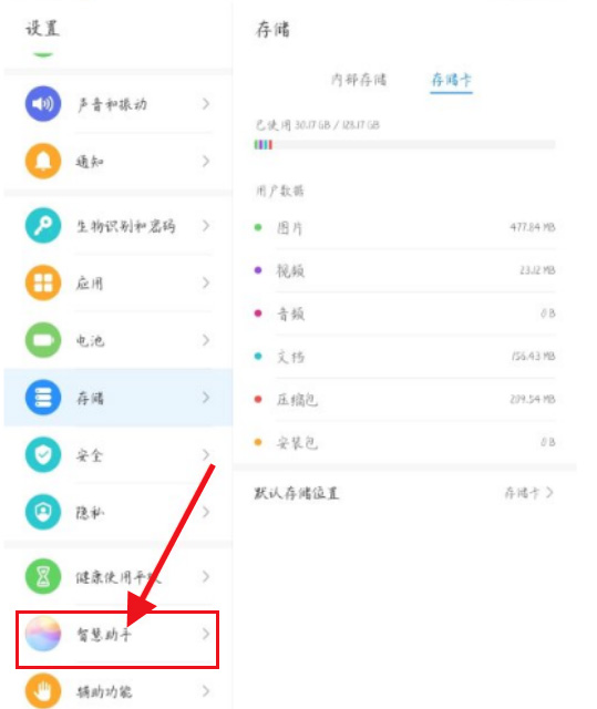 2、来到设置页面,我们点击智能助手。