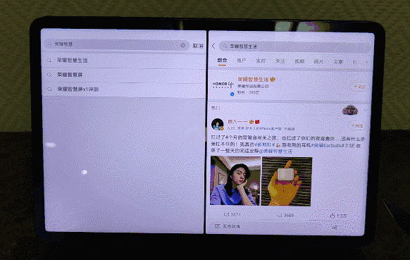 智慧分屏也是一个提高效率的功能,有了这项功能,荣耀平板v7 pro最多可以同时打开4个窗口,算是真正将大屏发挥到极致了,所以你可以一边看视频一边记笔记,一边回微信一边刷微博。