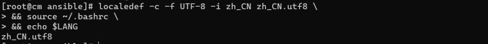 localedef -c -f utf-8 -i zh_cn zh_cn.utf8 \ && source ~/.bashrc \ && echo $lang