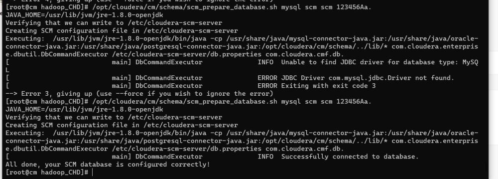 /opt/cloudera/cm/schema/scm_prepare_database.sh mysql scm scm 123456aa.
