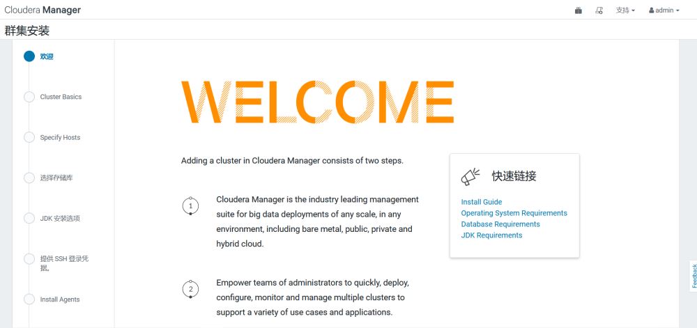 到这里如果没有什么问题,你可以在你的浏览器里面看到页面,http://ip:7180/cmf/login 账号密码:admin/admin