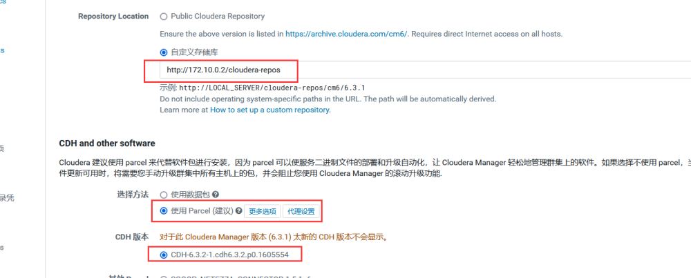 自定义存储库:http://172.10.0.2/cloudera-repos