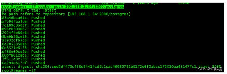 [root@jeames ~]# docker push 192.168.1.54:5000/postgres