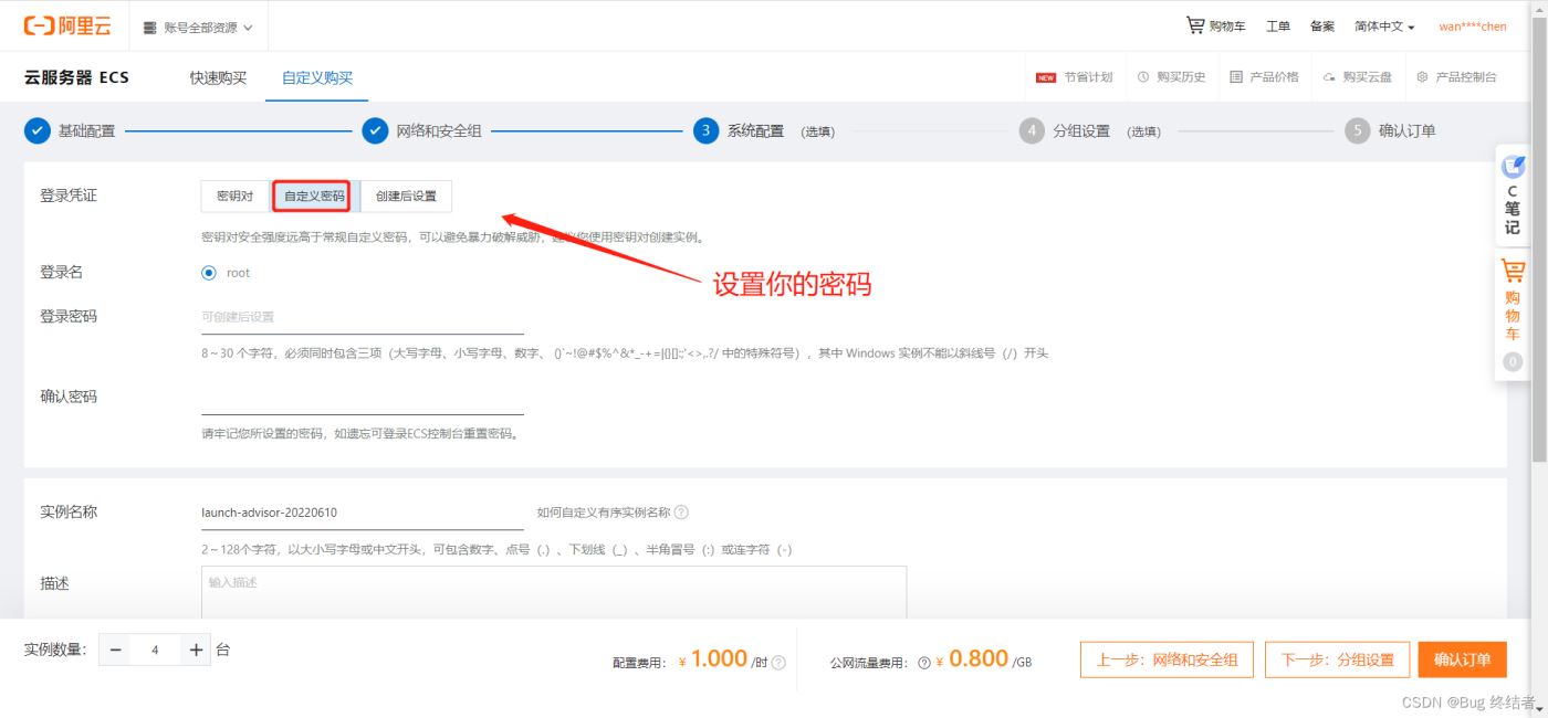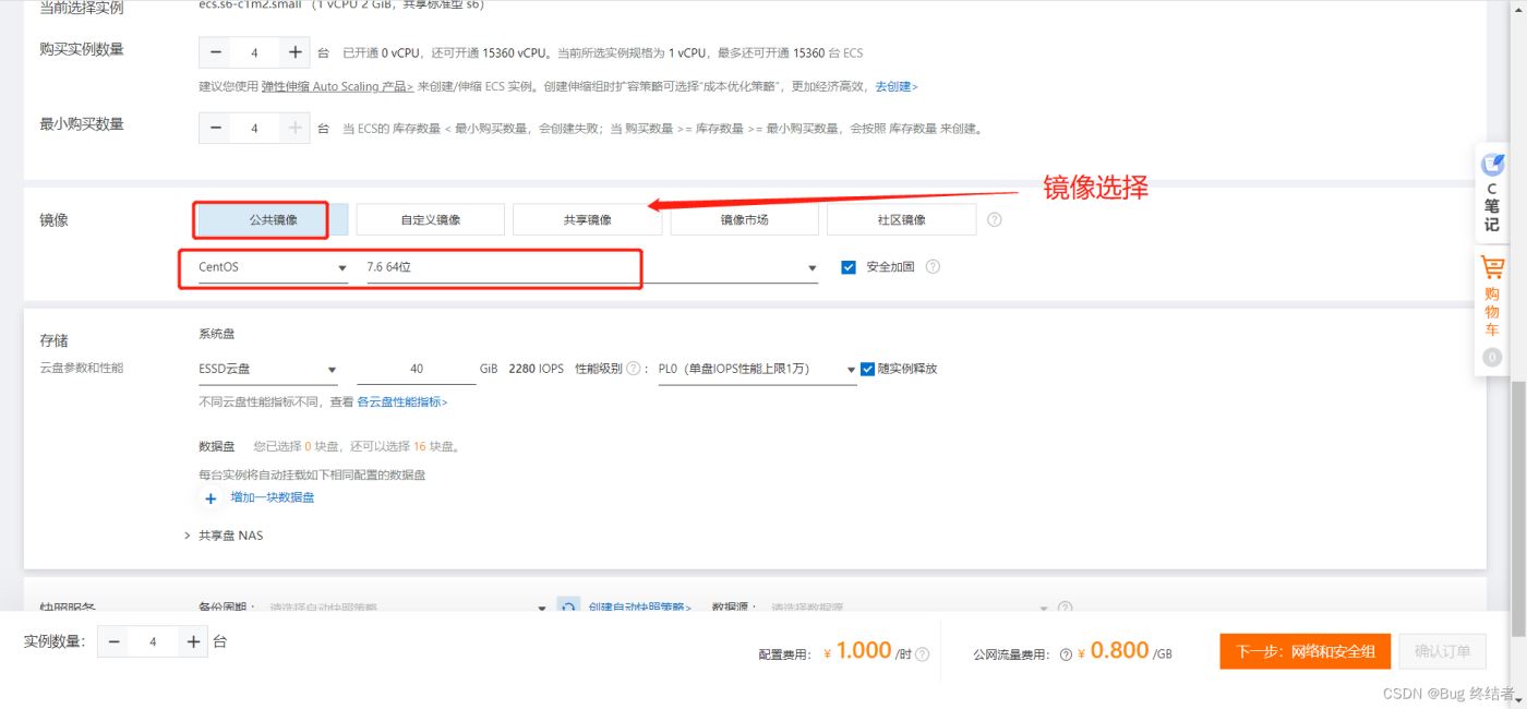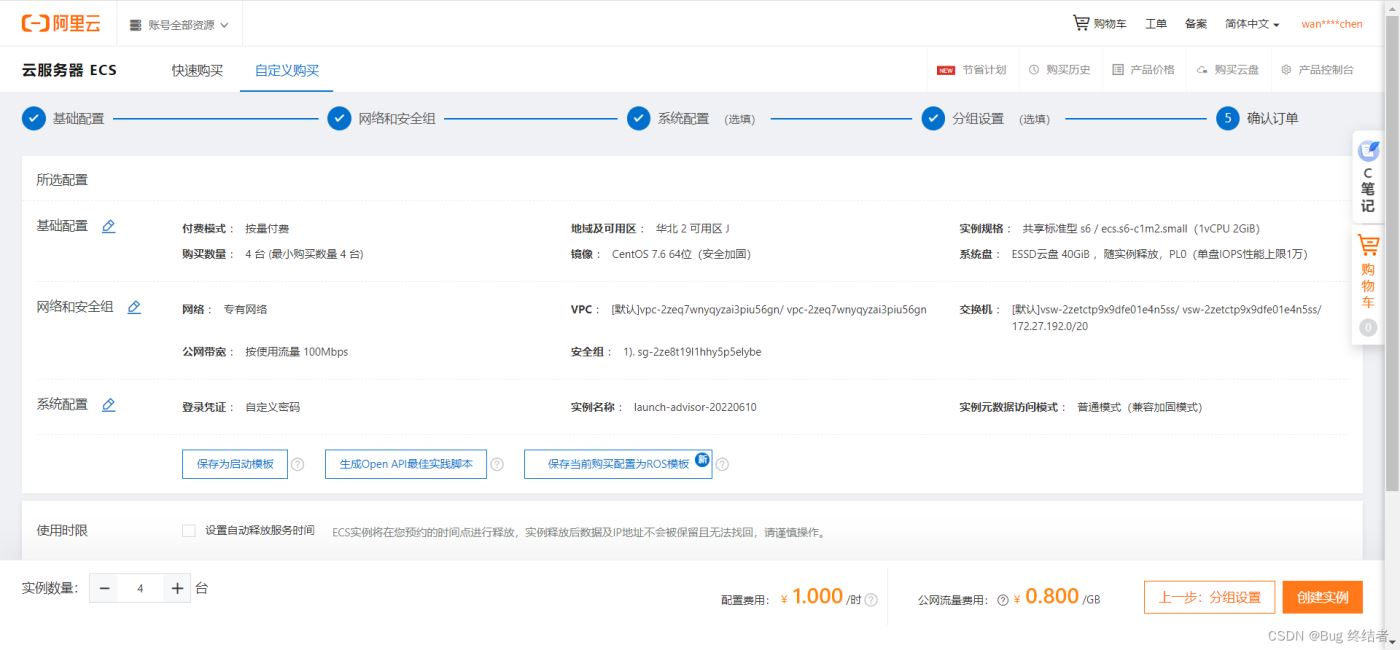 进入下一步网络和安全组设置,保持默认即可,带宽可拉满(不收费)