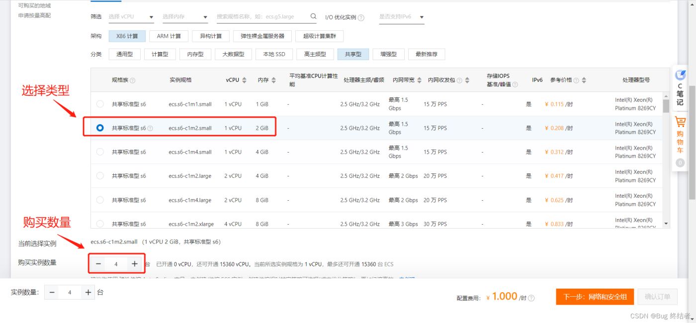 选择购买机器的类型 1v 2g 即可