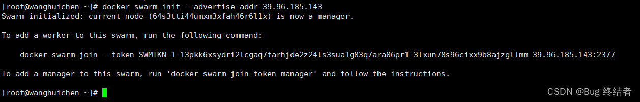 ip addr docker swarm init --advertise-addr 39.96.185.143