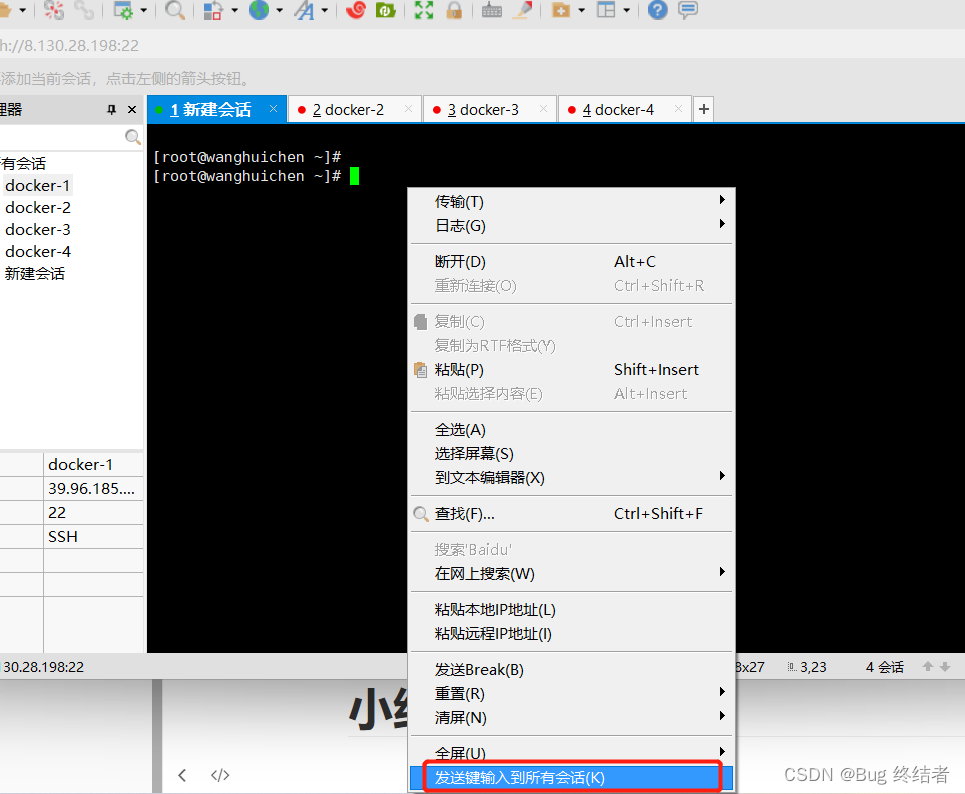 这样就是一个窗口输入命令其它窗口同步,高效率完成~
