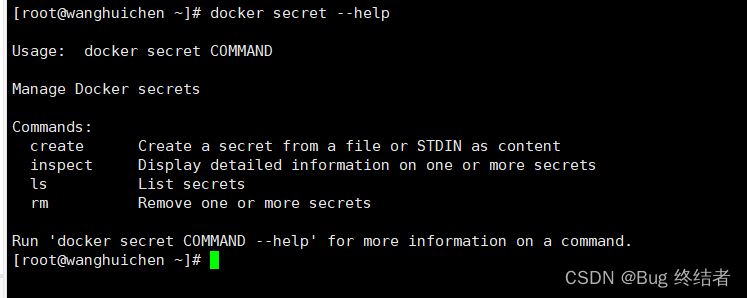 docker secret --help
