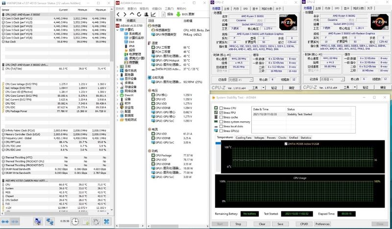 实用aida64 fpu烤机35分钟,锐龙5 5600g的核心功耗只有79w,cpu温度是65度。